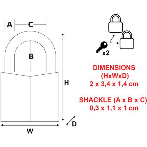 | Produktname | Vorhängeschloss mit Schlüssel aus massivem Aluminium, Farbe: Schwarz, Anzahl Schlüssel: 2, Bügel Ø: 3 mm |