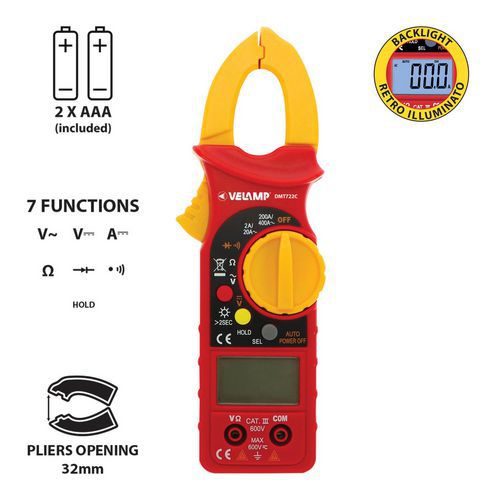 | Produktname | 7-in-1-Zangenamperemeter - Velamp, Max. AC Intensität: 400 A, Max. Widerstand: 20 MOhm |