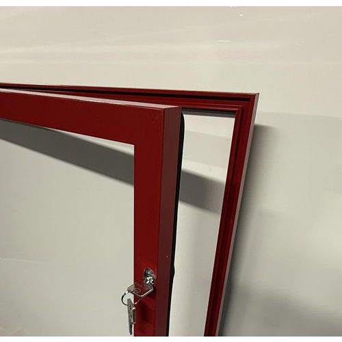 Außenvitrine mit Flügeltür, Aluminiumboden, roter Rahmen - AME
