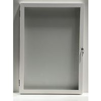 Außenvitrine mit weißem Boden, äußerst wasserdicht und wetterbeständig Magnetisch, wodurch Aushänge mit Magneten daran befestigt werden können Inklusive Schloss zur Absicherung von Aushängen Tür aus gehärtetem Glas für eine hohe Widerstandsfähigkeit