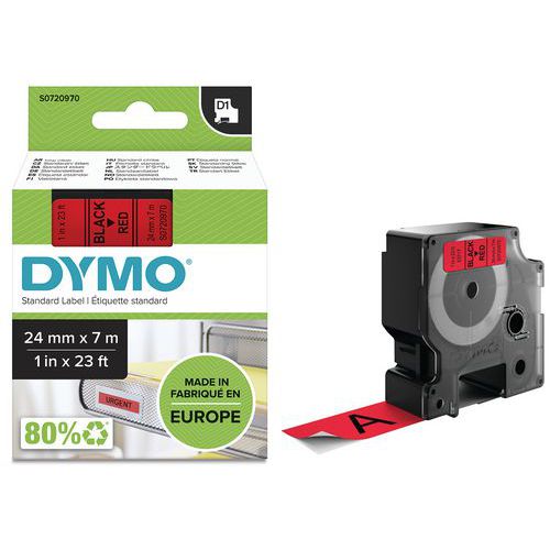 Bandkassette D1 Breite 24 mm - Dymo, Brett Farbe: Rot, Typ: S0720970, Länge Band: 7 m, Für Modell: LM300 Bandkassette D1 Breite 24 mm - Dymo, Brett Farbe: Rot, Typ: S0720970, Länge Band: 7 m, Für Modell: LM300