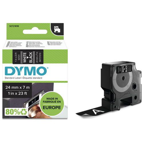 Bandkassette D1 Breite 24 mm - Dymo, Brett Farbe: Schwarz, Typ Produkt: S0721010, Länge Band: 7 m Bandkassette D1 Breite 24 mm - Dymo, Brett Farbe: Schwarz, Typ Produkt: S0721010, Länge Band: 7 m