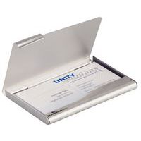Elegantes Aluminiumgehäuse für 20 Visitenkarten. Praktisch zum Mitnehmen dank des Taschenformats. Mattes, silbernes Etui. Porta i tuoi biglietti da visita con te ovunque