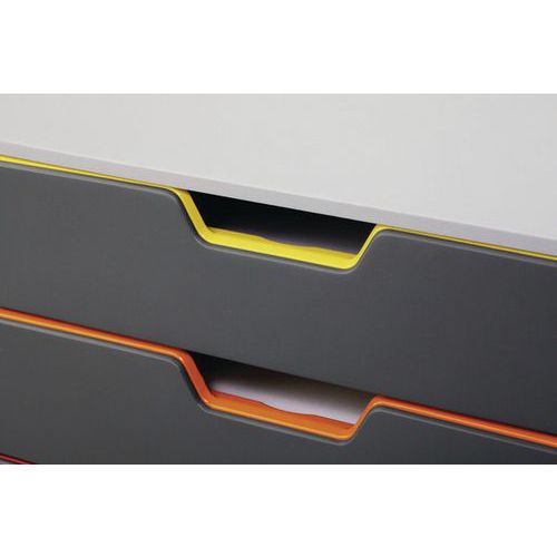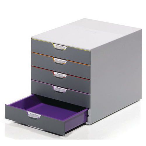| Produktname | Ablagesystem Varicolor - 5 Schubladen, Anzahl Schubladen: 5, Gesamthöhe: 29.2 cm, Gesamttiefe: 35.6 cm |