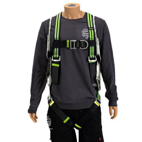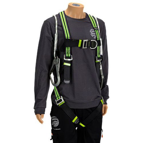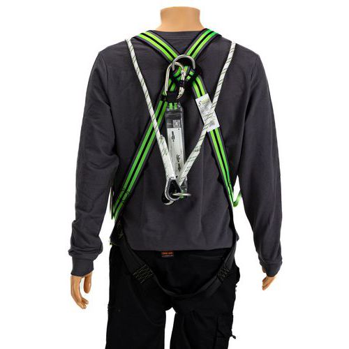 Inhalt des Sets: 1 Gurt, 1 doppeltes Verbindungsmittel mit Falldämpfer, 1 Rucksack