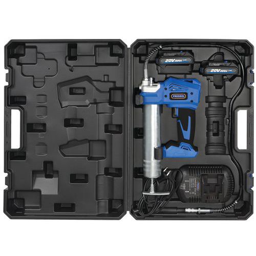 | Produktname | Akku-Schmierpresse mit ZBH - Ergonomischer Griff - Pressol, Farbe: Schwarz/Blau |