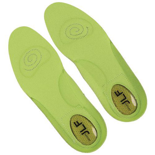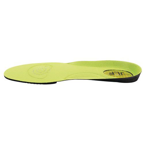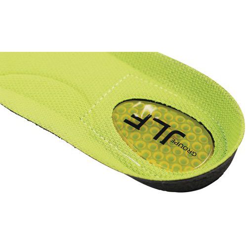 Thermogeformte anatomische Einlage für einen idealen Halt des Fußes Gelkapsel zur Dämpfung von Stößen im Fersenbereich. S3F®-Behandlung verhindert die Entwicklung von Bakterien und Pilzen, die für Mykosen verantwortlich sind. Atmungsaktive Einlage für großen Komfort dank der guten Feuchtigkeitsaufnahme. Antistatisch.
