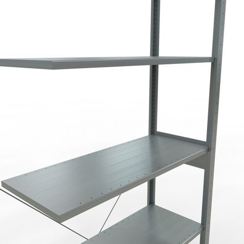 Robustes Lagerregal mit verzinkter Oberfläche, extrem witterungsbeständig in feuchten Umgebungen Auf den durchgehenden Stahlfachböden können Waren in vielen unterschiedlichen Größen gelagert werden Einfach und schnell durch Ineinanderstecken aufzubauendes Industrieregal, kein spezielles Werkzeug erforderlich Einfach erweiterbar mit einem oder mehreren Anbauelementen Lochabstand: 25 mm, Höhe des ersten Perforationslochs: 50 mm