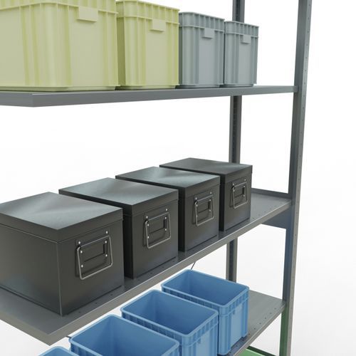 Robustes Lagerregal mit verzinkter Oberfläche, extrem witterungsbeständig in feuchten Umgebungen Auf den durchgehenden Stahlfachböden können Waren in vielen unterschiedlichen Größen gelagert werden Einfach und schnell durch Ineinanderstecken aufzubauendes Industrieregal, kein spezielles Werkzeug erforderlich Einfach erweiterbar mit einem oder mehreren Anbauelementen Lochabstand: 25 mm, Höhe des ersten Perforationslochs: 50 mm