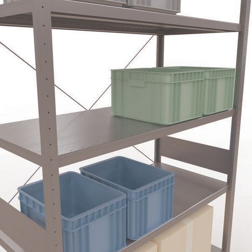 Robustes Lagerregal mit verzinkter Oberfläche, extrem witterungsbeständig in feuchten Umgebungen Auf den durchgehenden Stahlfachböden können Waren in vielen unterschiedlichen Größen gelagert werden Einfach und schnell durch Ineinanderstecken aufzubauendes Industrieregal, kein spezielles Werkzeug erforderlich Einfach erweiterbar mit einem oder mehreren Anbauelementen Lochabstand: 25 mm, Höhe des ersten Perforationslochs: 50 mm Höhe des ersten Perforationslochs: 22,5 mm