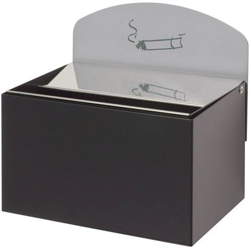 Ascher aus verzinktem Stahlblech, mit Polyesterpulver beschichtet. Klappen aus poliertem Edelstahl. Ascher mit Einsatz aus verzinktem Stahlblech.
