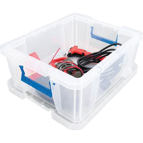 Solider und sehr stabiler Lagerbehälter. Praktisch und dank der Griffe leicht zu transportieren. Aufgrund der durchsichtigen Wände ist schnell erkennbar, was darin lagert.