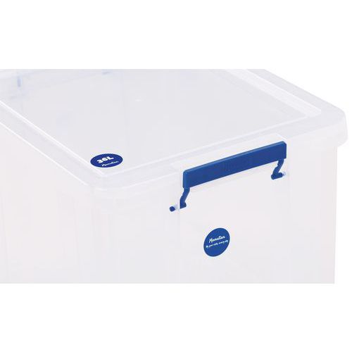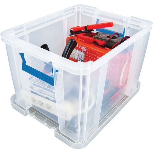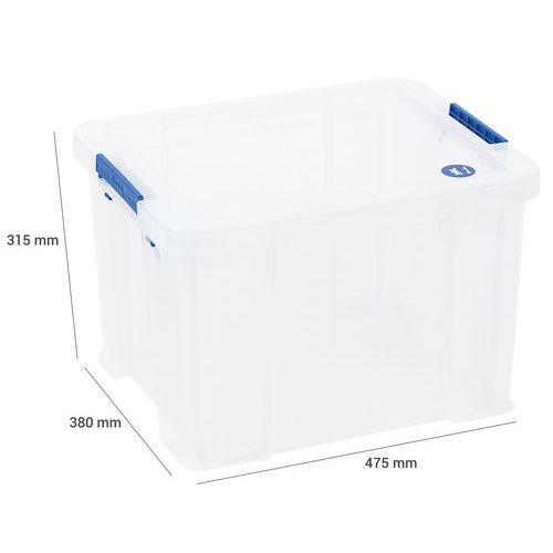 Solider und sehr stabiler Lagerbehälter. Praktisch und dank der Griffe leicht zu transportieren. Aufgrund der durchsichtigen Wände ist schnell erkennbar, was darin lagert.