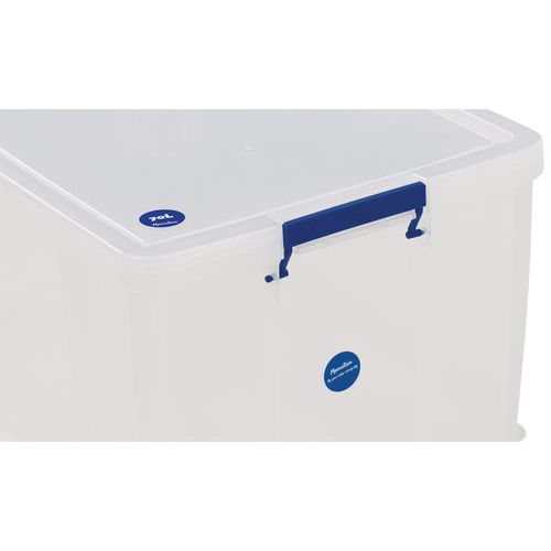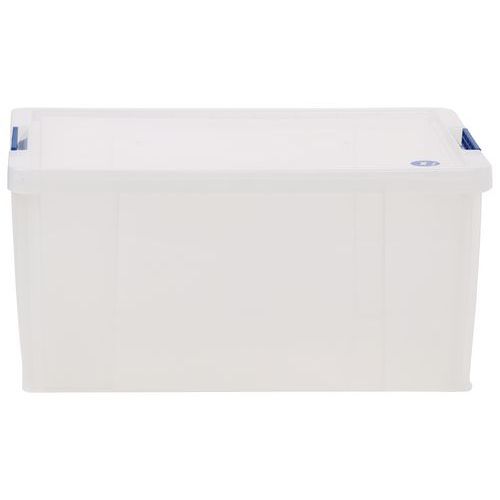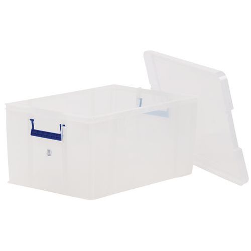 Solider und sehr stabiler Lagerbehälter. Praktisch und dank der Griffe leicht zu transportieren. Aufgrund der durchsichtigen Wände ist schnell erkennbar, was darin lagert. Hergestellt in UK NSF zertifiziert Max. Belastung (kg) : 200 kg
