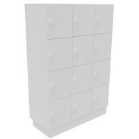 | Produktname | Aufbewahrungsspind 12 Fächer, Gesamthöhe: 15.75 cm, Gesamtbreite: 11.7 cm, Farbe Korpus: Weiß |