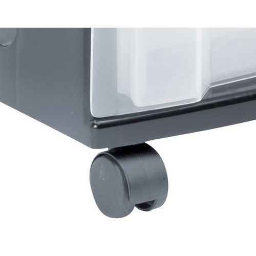 Transparente Schubladen zur besseren Sichtbarkeit des Inhalts.