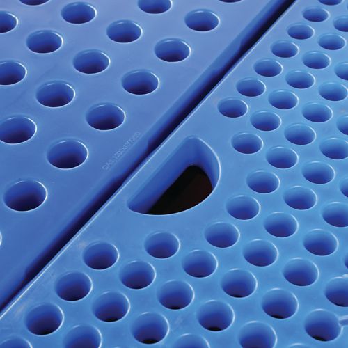Auffangwanne für 3 IBC, ideal für die Aufbewahrung und das Abfüllen von gefährlichen Stoffen. Hergestellt aus Polyethylen: Unempfindlich gegen Korrosion und inert gegen zahlreiche chemische Produkte. Transport des leeren und nicht beladenen Behälters mit Hubwagen oder Gabelstapler.
