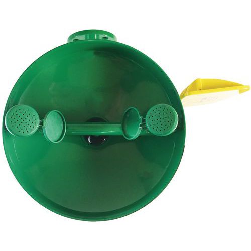 Augendusche, Wandausführung, grün, stoßfest Wasser bleibt mittels Bedienpalette aufgedreht.