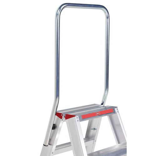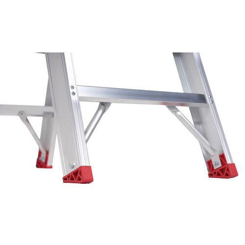 Beidseitig begehbare Stufenleiter für den professionellen Einsatz aus extrem leichtem Aluminium mit offenem Stufenprofil. Die Stufen sind mit Hohlnieten befestigt. Dadurch lassen sie sich bei Bedarf schnell austauschen. Garantierte Sicherheit dank rutschfestem Profil und Scharniersystem, das dem Einklemmen der Finger vorbeugt. Max. Belastung (kg) : 150 Kundengarantie : 3 Jahre