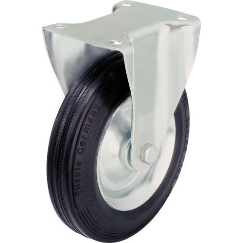 Industrie-Ausführung. Standard-Vollgummireifen. Halterung aus tiefgezogenem Stahlblech, mittelschwer. Dichtung im Lenksystem. Stahlkörper.