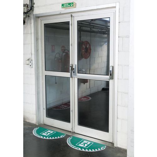 | Produktname | Bodenaufkleber - Notausgang, Werkstoff: PVC, Breite: 700 mm, Farbe: Grün, Paneel Form: Halbkreisförmig |