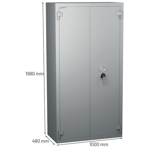| Produktname | Brandsicherer Tresor, Gesamthöhe: 1980 mm, Gesamtbreite: 1000 mm, Typ Verschluss: Mit Schlüssel |