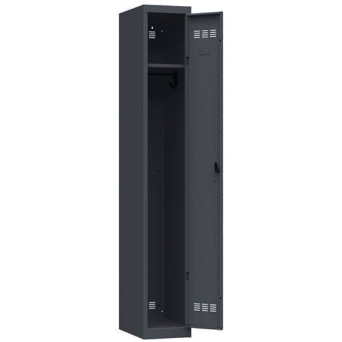 Bürospind mit 1 Säule. Der moderne Bürospind vereint Qualität, Sicherheit und Design. Im Werk verschweißt und daher garantiert robust. Höchste Aufbruchsicherheit. Consigli di sicurezza: - installare il mobile su una superficie piana - fissarlo su una parete o parete divisoria con un fissaggio adeguato - assicurarsi di non superare il carico massimo consigliato e la sua buona distribuzione