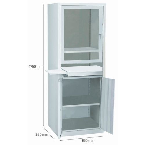 | Produktname | Computerschrank, Max. Belastung: 300 kg, Werkstoff: Stahl, Gesamthöhe: 1750 mm, Gesamtbreite: 650 mm |