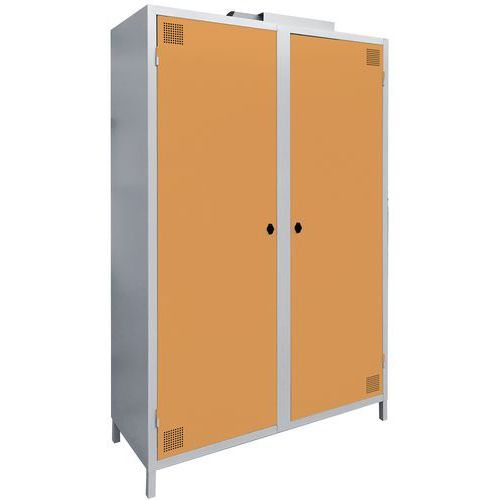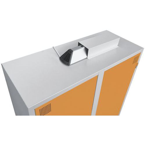 Schrank zur schnellen Desinfektion von Kleidung und Werkzeugen, effizient und günstig, mit Ozon-Technologie. Für ungehinderten Ozon-Strom und gute Lüftung ist der Fachboden großzügig durchlöchert. Schrank mit Schutzhaube und Betriebsanzeige Air Care. Prodotto progettato e fabbricato in Francia. Soluzione all'ozono: disinfezione totale di indumenti e strumenti in tempi record!