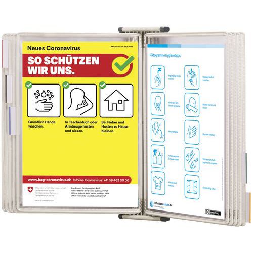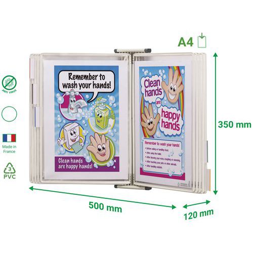 Antimikrobielles Drehwandhalterungskit für die hygienische Bereitstellung von Dokumenten.