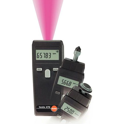 | Produktname | Drehzahlmesser Testo 470, Max. gemessene Geschwindigkeit ohne Kontakt: 99999 U/min |