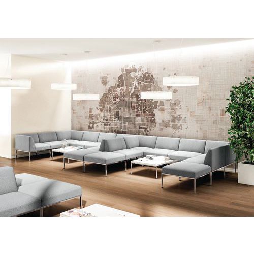 Sessel oder Eckmodul aus Stoff mit Sperrholz-Verbundplatte aus Buchenholz. Mit den Astro-Produkten kombinierbares Sitzsystem. Passen Sie dieses System an Ihr modernes Wartezimmer, Ihre Hotellobby oder Ihr Café an. Modernes und zeitgemäßes Design mit sehr eleganten und hochwertigen Bezügen.