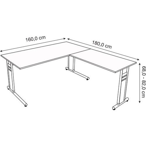 | Produktname | Einstellbarer Schreibtisch in L-Form Form 4, Typ Unterseite: L-Form, Gesamtbreite: 160 cm |