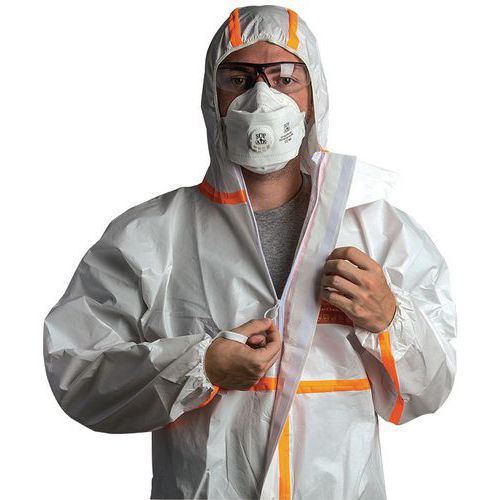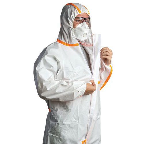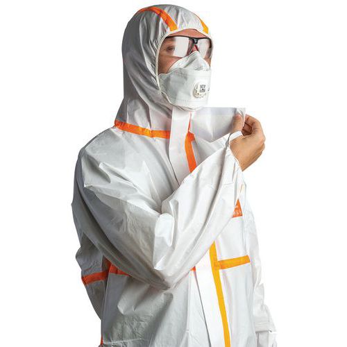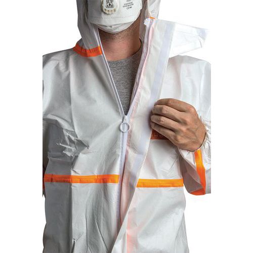 Der Schutzoverall bietet effizienten Schutz gegen radioaktive Kontamination durch Partikel.