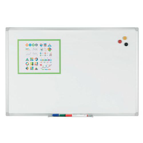 Emailliertes Whiteboard mit robustem und elegantem Aluminiumrahmen.