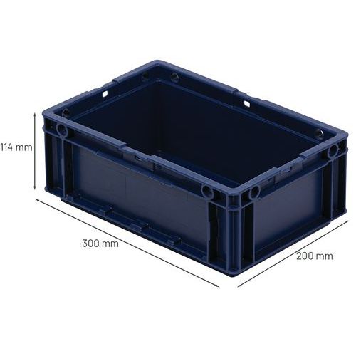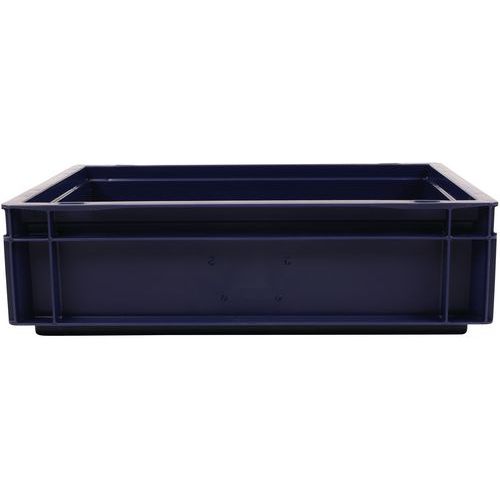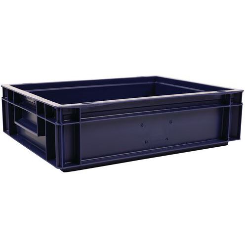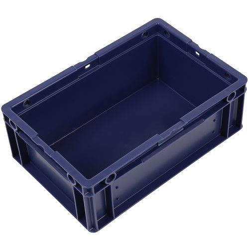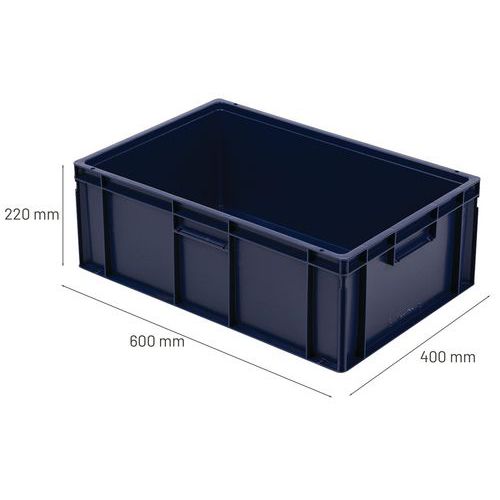 Euronorm-Behälter mit hoher Stabilität beim Stapeln. Geschlossene Griffe: einfache Handhabung, keine Verringerung der Kapazität. Beständig gegen Öle, Fette und zahlreiche Chemikalien