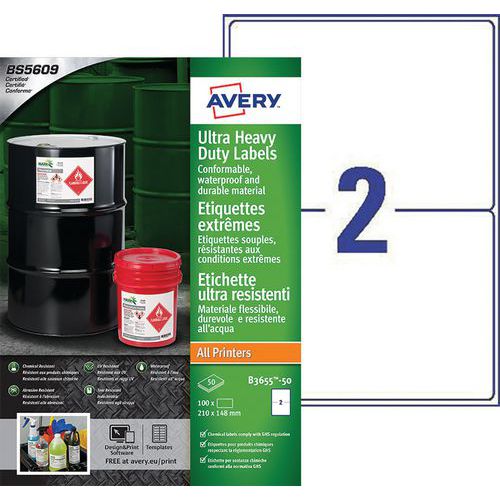 Zertifiziert nach BS-5609, Sektion 2 (Widerstandsfähigkeit des Etiketts und des Klebstoffes) und für die Etikettierung von gefährlichen, chemischen Produkten geeignet.