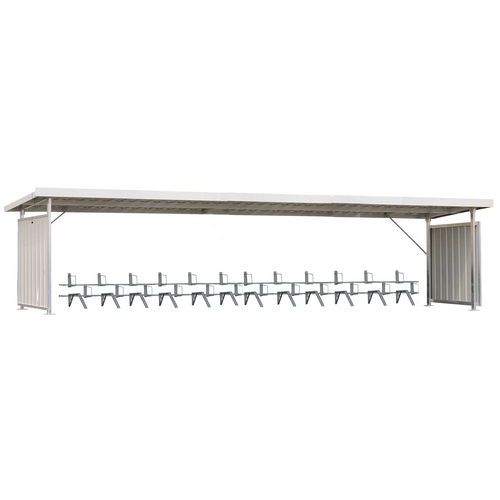 Fahrradunterstand mit Flachdach, Gesamtlänge: 10.61 m, Gesamttiefe: 2.53 m, Modell: Einseitig