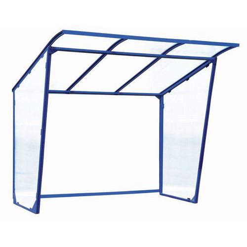 Fahrradunterstand mit halbdurchscheinender Polykarbonatwand. Große geneigte Abdeckung vorn. Doppelwandiges, solides Dach (10 mm). Einfache Montage der Seitenteile mit Bolzen. Montage : Zum Aufbauen