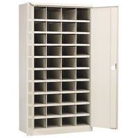Schrank mit Fächern, komplett geliefert mit lackierten Einlegeböden und verstellbaren Metallunterteilern.
