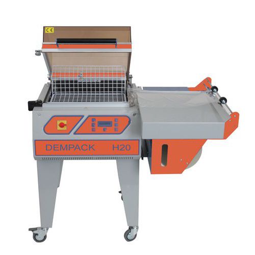 Halb automatisches Folienschweißgerät mit Haube. 10 serienmäßig programmierbare Betriebsarten. Gleichzeitiges Schweißen und Schrumpfen in nur einem Schritt. Nach Vorgangsende automatisch öffnende Haube zur Entnahme des eingeschweißten und verschlossenen Produkts. Einfache Überwachung laufender Vorgänge über alphanumerische LCD-Tafel mit Mikroprozessorkarte. Verstellbare Arbeitshöhe. Haube bleibt per Elektromagnet verschlossen.