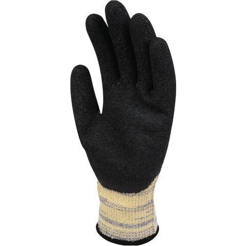 Schnittschutz gemäß Niveau 5, Latex-Beschichtung an der Handinnenfläche und den Fingerspitzen Stärke 10. TAEKI 5-Fasern (synthetisch: Hochleistung) Beschichtung: 100% Latex