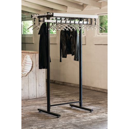 | Produktname | Garderobe , Höhe: 175 cm, Breite: 120 cm, Farbe: Schwarz, Typ Produkt: Doppelseitig, Tiefe: 110 cm |