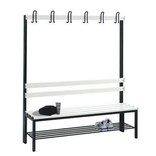 Garderobenbank CP aus PVC – 4 bis 8 Kleiderhaken – einseitig – mit Rückenlehne und Schuhablage