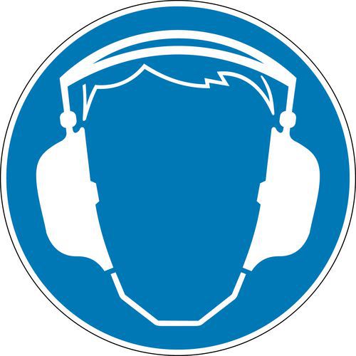 Gebotsschild - Gehörschutz vorgeschrieben - steif, Selbstklebend: nein, Starr: ja, Norm ISO 7010: ja