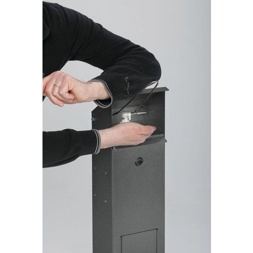 Mit Diebstahlsicherung zur Aufbewahrung des Desinfektionsmittels.