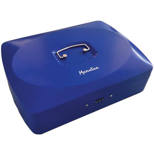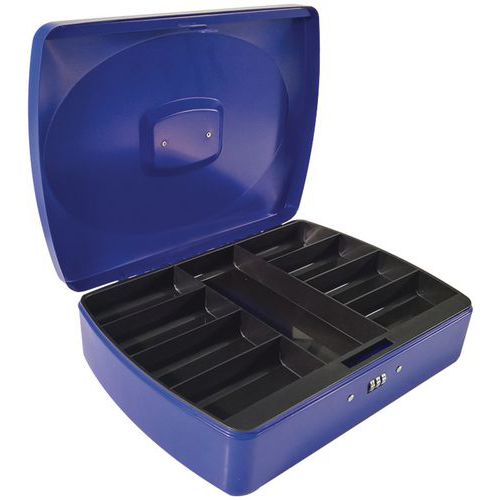 Geldkassette mit Codeschloss, Farbe: Blau, Breite: 238 mm, Längen: 330 mm, Höhe: 90 mm, Materialien: Stahl