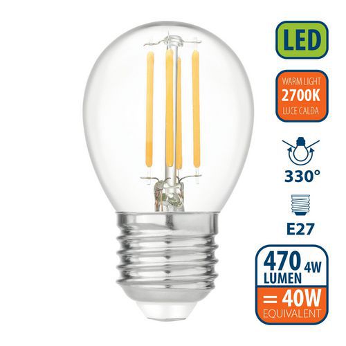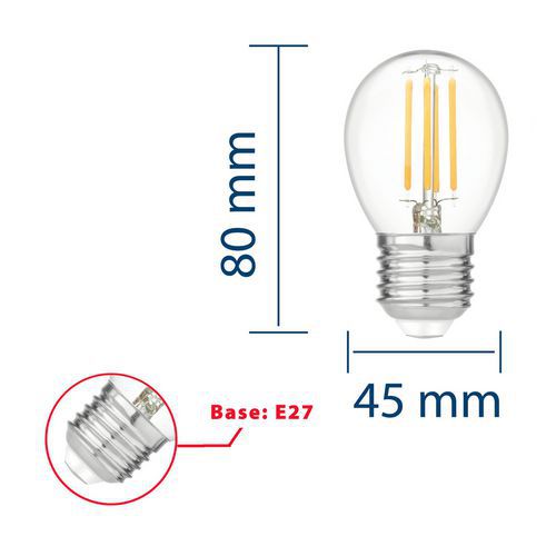 Glühbirne mit LED-Leuchtfäden P45 4 W Sockel E27 - VELAMP