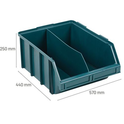 Großformatiger kombinierbarer Sichtlagerkasten mit Trennwand - Länge 570 mm - 60 L