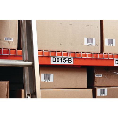 Aderisce permanentemente alla maggior parte delle superfici: lisce, ruvide, piane, curve. Compatibile con la gamma di stampanti per etichette DYMO LabelWriter. Applicazioni suggerite: archiviazione, raccoglitori, cartellini dei prezzi, spazzatura, CD, fascicoli, scatole.
